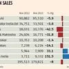 While sales for Tata Motors declined 42.5 per cent dip to 10,376 vehicles in November, utility vehicle market leader M&M registered a dip of 32 per cent selling 16,771 passenger vehicles during the month.