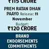 While his films account for almost Rs 250 crore in investments, he also has brand endorsement commitments of around Rs 100 crore to honour per year. The investment on his films accounts for almost one-fifth of the total investment on Bollywood movies between June and October, which is when most high-profile releases will hit the screens.