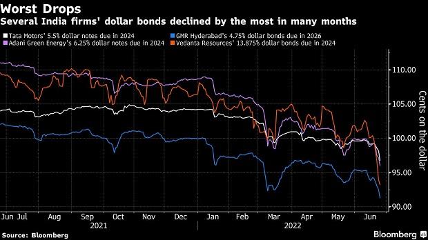 “India bonds are declining in line with other Asian markets as market sentiment in general is weak,” said Eric Liu, credit desk analyst in Hong Kong at Nomura Holdings Inc. “A weak rupee is also one of the factors driving the fall in the nation’s credit.”