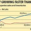 The companies reported combined net sales of Rs 28,026 crore in 2014-15, up 7.5 per cent from a year ago. The growth in inventory was faster at 8.8 per cent. (See chart)