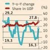 Gross fixed capital formation (proxy for investment) increased 2.6 per cent in the second quarter, against -1.2 per cent in the first quarter and 1.1 per cent in the year-ago period, though much below the double-digit growth recorded during the boom period of 2004-08. Investment demand accounted for 33.6 per cent of GDP in the second quarter, 100 basis points higher than in the first quarter, but 100 basis points lower on a year-on-year basis. At its peak, investment accounted for 36 per cent of GDP.
