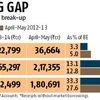 It was primarily tax revenues that took a toll on the fiscal deficit. For April-May, tax revenues stood at Rs 36,030 crore, which was just 3.1 per cent of BE of Rs 8.84 lakh crore. In the corresponding period of 2012-13, tax revenues had constituted 5.3 per cent of BE.