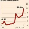 A forward premium is the spread between the current exchange rate and the higher level used in forward currency exchange deals. The one-month premium moved up to by 160 bps to 10.04 per cent. For one year, the premium was 83 bps, to 9.78 per cent. A premium is the market's indication that the current domestic exchange rate will appreciate.