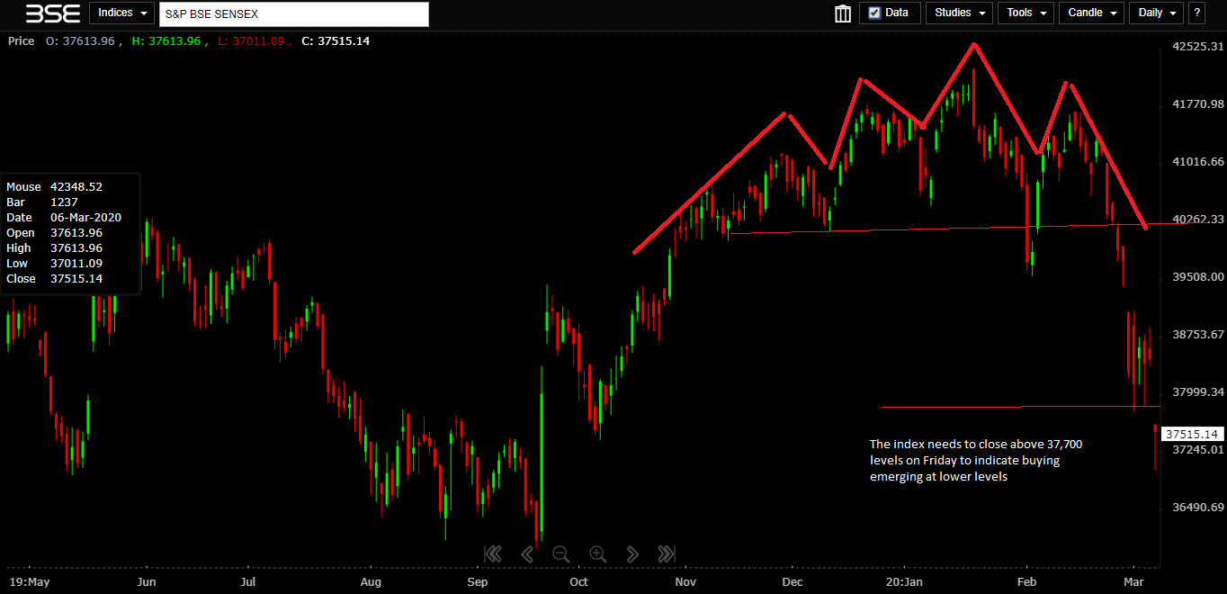 The S&P BSE Sensex needs to close above 37,700 levels on Friday and one needs to see buying emerge at lower levels. Only then, one can see a revival towards 39,000 levels in the days ahead.