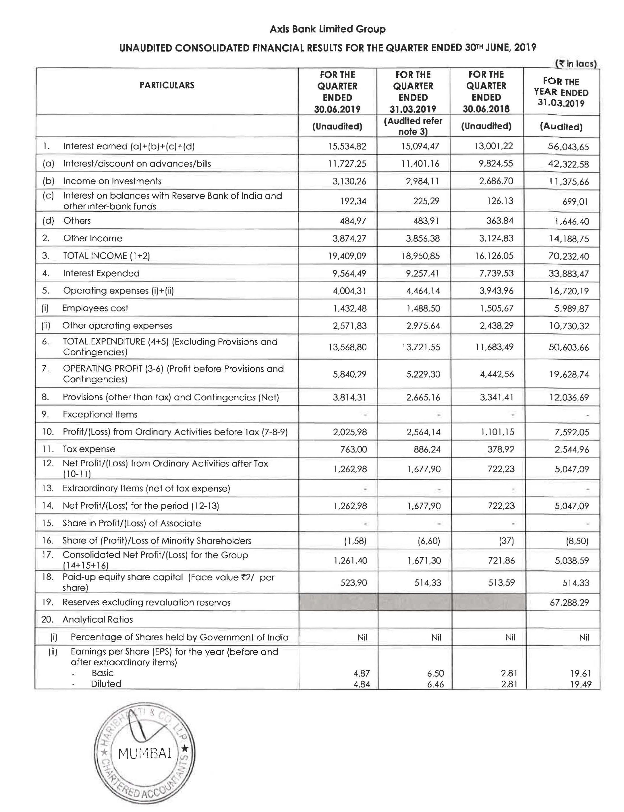 This was in-line with the analysts' expectations. Analysts at Prabhudas Lilladher had expected Axis Bank’s gross non-performing asset (GNPA) ratio to reduce by 126 basis points YoY, but come flat sequentially at 5.26 per cent. It was 6.52 per cent in Q1FY19 and 5.26 per cent in Q4FY19.