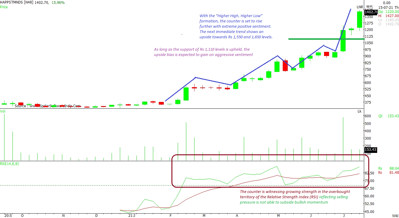 As long as the counter upholds the support of 100-days moving average (DMA), the upside bias is expected to sustain and the counter can venture into uncharted territory in coming sessions. The 100-DMA is currently placed at Rs 1,681 levels. The immediate support comes in at Rs 2,000 levels. Going ahead, there are chances that the stock can move towards Rs 2,400 and then Rs 2,550 levels. CLICK HERE FOR THE CHART