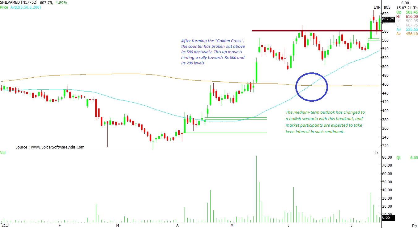 After forming the “Golden Cross” on the techncial charts, the counter has broken out above Rs 580 decisively. This up move is hinting at a rally towards Rs 660 and then Rs 700 levels. The medium-term outlook has turned bullish with this breakout. Investor interest is likely to remain high in this counter in the days ahead. CLICK HERE FOR THE CHART