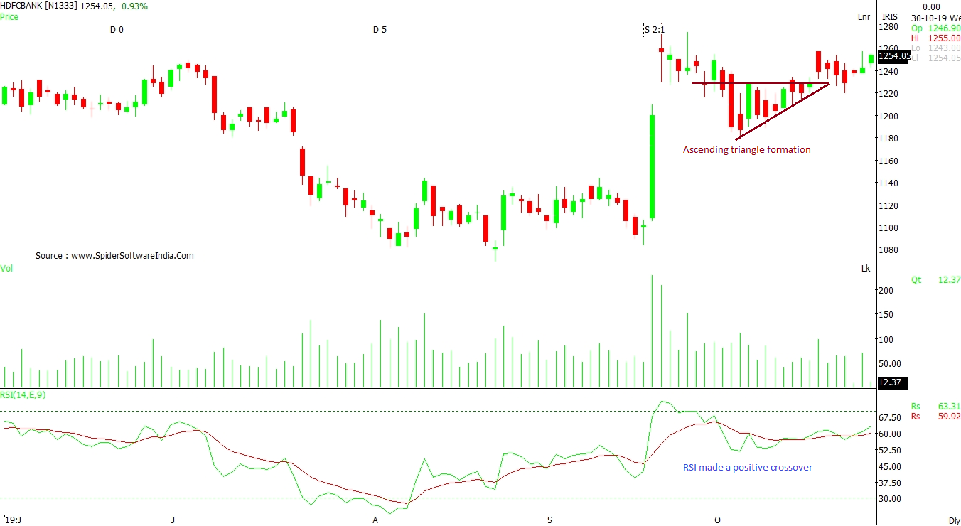 HDFC Bank Ltd (HDFCBANK): The “Ascending Triangle” formation on the daily chart with a positive bias suggested an upside. This got exhibited after five sessions as it gained momentum on every dip around Rs 1,225, which is its neckline. It has been a significant level as the counter failed to close above it for several sessions before breaking out strongly. This has helped Relative Strength Index (RSI) to reach a positive crossover. CLICK TO VIEW CHART