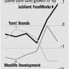 More important, Jubilant is ahead of peers on SSSG for the quarter. Both Westlife Development (runs McDonald's in West and South India) and Yum! Brands (runs Pizza Hut, KFC and Taco Bel) saw sales fall by 4.8 per cent and 11 per cent, respectively, in the three months ending March. This is five quarters of a fall for these two companies, quarter-on-quarter.