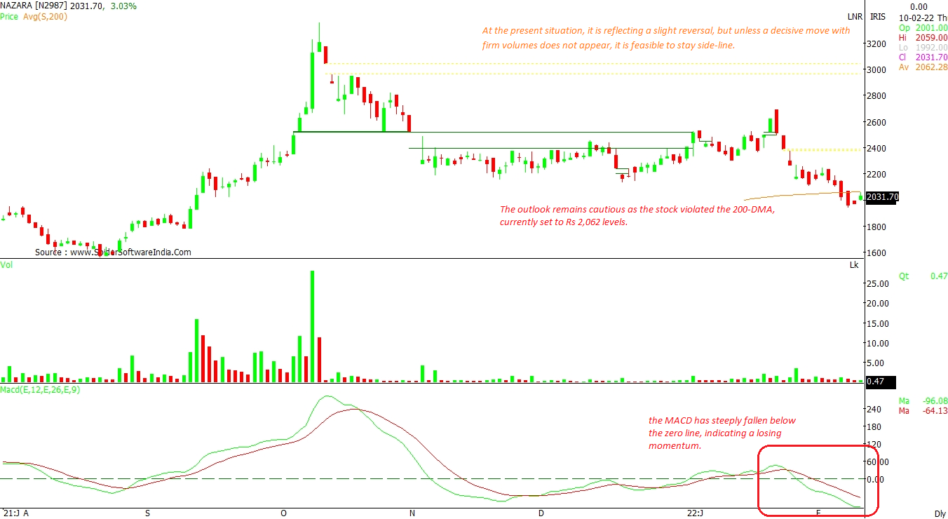The outlook remains cautious as the stock violated the 200-DMA, currently set to Rs 2,062 level. Moreover, the MACD has steeply fallen below the zero line, indicating a loss of momentum. At the present situation, it is reflecting a slight reversal, but unless a decisive move with firm volume does not appear, it is feasible to stay side-line. CLICK HERE FOR THE CHART