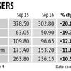 Among small-caps, Venus Remedies, NDTV, Nucleus Software Exports, Onmobile Global, Dhunseri Petrochem & Tea and Himachal Futuristic Communications declined more than 10 per cent each on Tuesday, while in the mid-cap segment, HDIL, GSFC, Delta Corp, Gujarat Pipavav Port, Amtek India and Arvind fell up to 20 per cent each.
