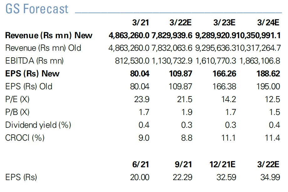 Click here for RIL's earnings estimates (Source: Goldman Sachs)