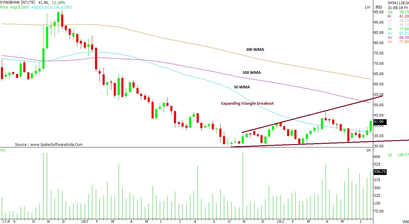 Syndicate Bank (SYNDIBANK): A formation of 'expanding triangle' on the weekly chart provides excellent opportunity for trading within both trendlines. This is a scenario where the stock holds the lower trendline support and resists at the upper trendline. At current levels, Rs 54 seems to be the resistance level for the counter with strong buying support at Rs 33. Trading with above-average volume further strengthens the upside move, suggesting that the positive rally is likely to continue. CLICK HERE FOR DETAILED CHART VIEW