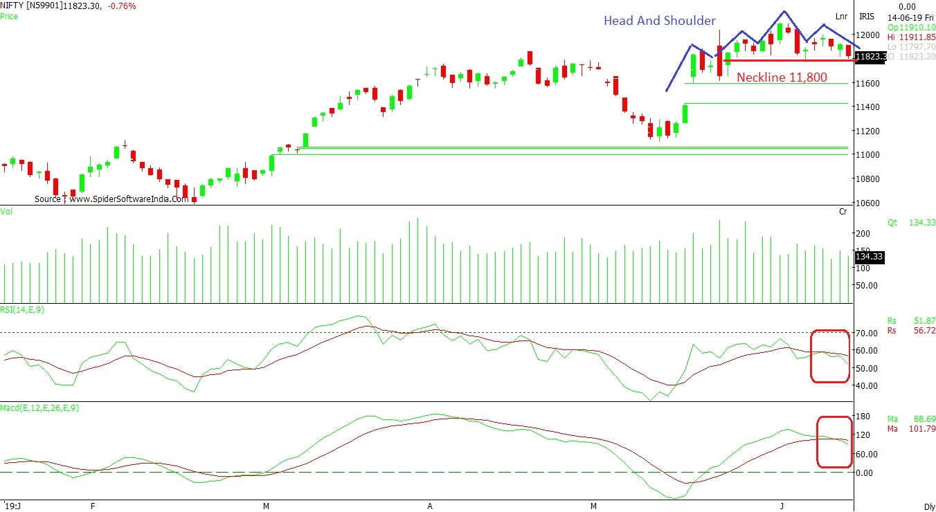 Nifty 50: The index is on the verge of forming a 'Head and Shoulder' pattern, which suggests traders should remain cautious for the coming sessions. A breakdown will harm the sentiment further, which is already deteriorating. No doubt that 11,800 stays as strong support on a closing basis and a continuous close below the same may lead to 11,550 to 11,500 levels. CLICK HERE FOR DETAILED CHART VIEW