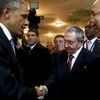 National Security Council spokesperson Bernadette Meehan issued a statement saying that "President Obama and President Castro greeted each other and shook hands" at the summit.