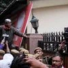 The rival sides had attacked each other indulging in pelting of stones. Plastic chairs were hurled from inside BJP office on the protesters outside.Police had used water canons to disperse the warring activists.
