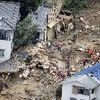 Dozens of houses were buried when a wall of mud thundered down a hillside in Hiroshima overnight, television pictures showed, leaving rescuers to pick through the devastation for any signs of life.