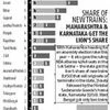 With Maharashtra heading for an assembly election later this year — it also gave the ruling NDA alliance 42/48 seats in the Lok Sabha — the state got the lion's share of new trains (13/50) that will originate or terminate in the state, closely followed by the Minister Sadananda Gowda's home state, Karnataka (12/50). West Bengal got only two trains