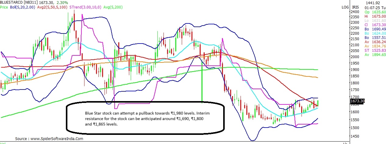 Current Price: ₹1,664 Upside Potential: 19% Support: ₹1,624; ₹1,525 Resistance: ₹1,690; ₹1,800; ₹1,865 Blue Star stock is seen trading above its 20-DMA in recent sessions. The 20-DMA support stands at ₹1,624, followed by the key support at ₹1,525 levels. On the upside, the stock may attempt a pullback towards ₹1,980 levels, with interim resistance likely around ₹1,690, ₹1,800 and ₹1,865 levels. CLICK HERE FOR THE CHARTOne subscription. Two world-class reads.