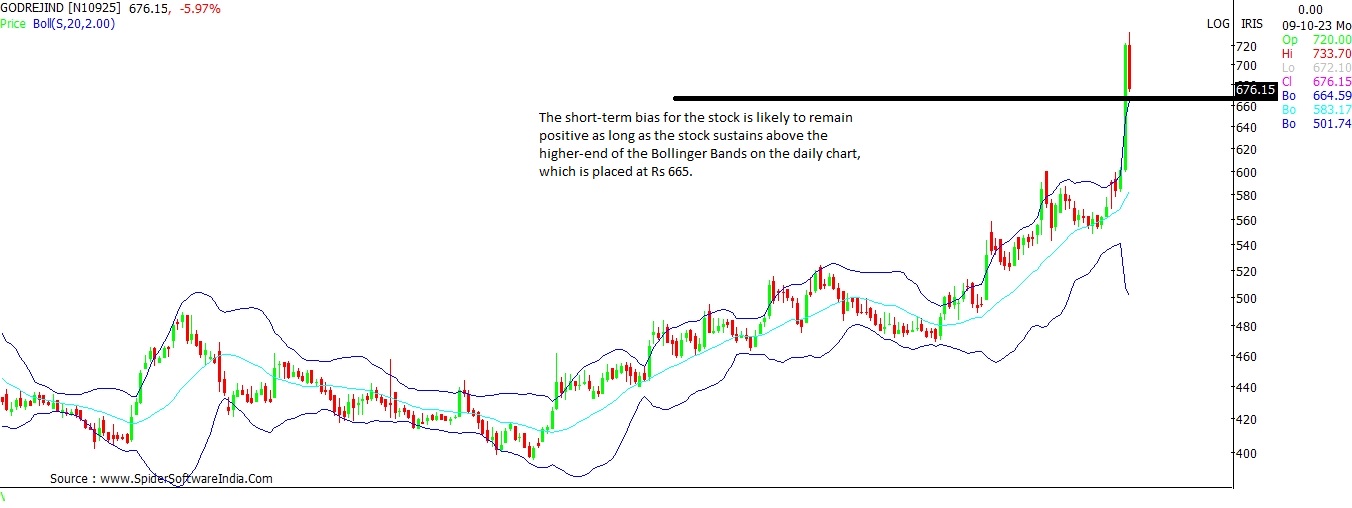 Despite today's over 5 per cent fall, the stock is seen trading above the higher-end of the Bollinger Bands on the daily chart, which shows existence of support at Rs 665. On the upside, the stock may look to test Rs 750 levels soon. CLICK HERE FOR THE CHART