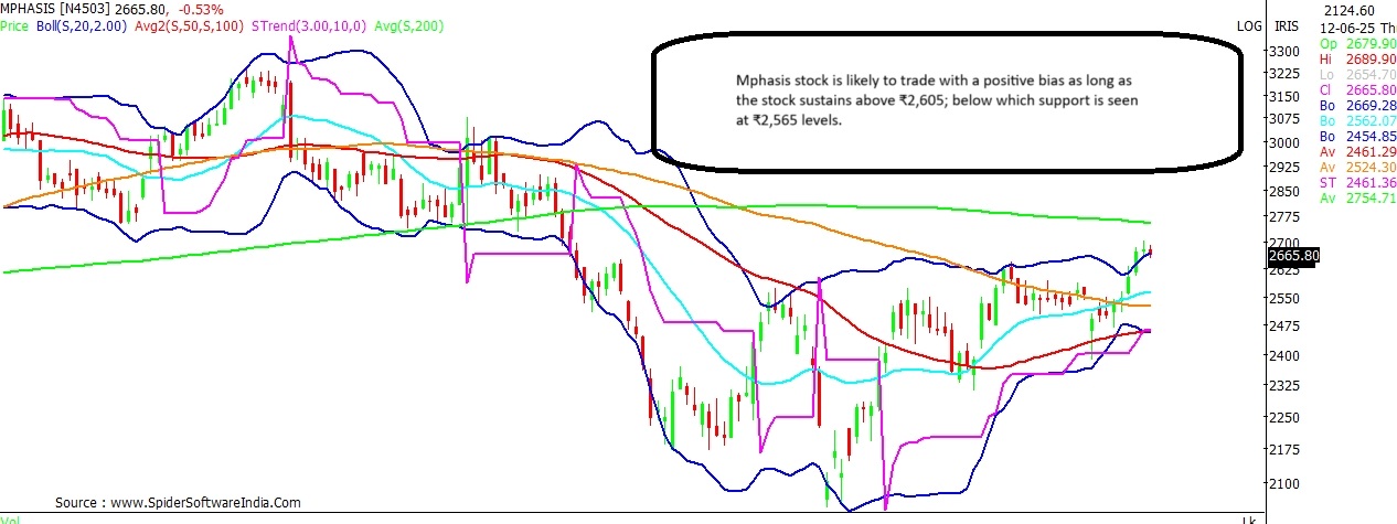 Current Price: ₹2,666 Upside Potential: 6.9% Support: ₹2,605; ₹2,565 Resistance: ₹2,755 The near-term bias for Mphasis stock is likely to be positive as long as the stock trades above ₹2,605; below which notable support for the stock exists around ₹2,565 levels. On the upside, the stock trades near an overhead resistance in the form of the 200-DMA at ₹2,755; above which the stock can potentially rally to ₹2,850 levels, shows the medium-term chart. CLICK HERE FOR THE CHARTOne subscription. Two world-class reads.