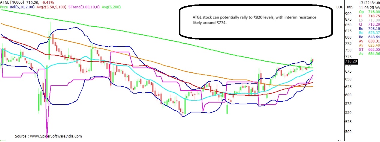 Current Price: ₹711 Upside Potential: 15.3% Support: ₹709; ₹685 Resistance: ₹774 ATGL stock is seen trading above its 200-Day Moving Average (200-DMA) for the third straight trading session, after a gap of almost 10 months. Technical chart shows presence of near support at ₹709 levels; below which the 200-DMA at ₹685 should act as a formidable support. On the upside, the stock can rally to ₹820 levels, with interim resistance likely around ₹774. CLICK HERE FOR THE CHART ALSO READ | Nifty Bank likely to hit 60,000; these 5 bank stocks likely to gainLTIMindtree