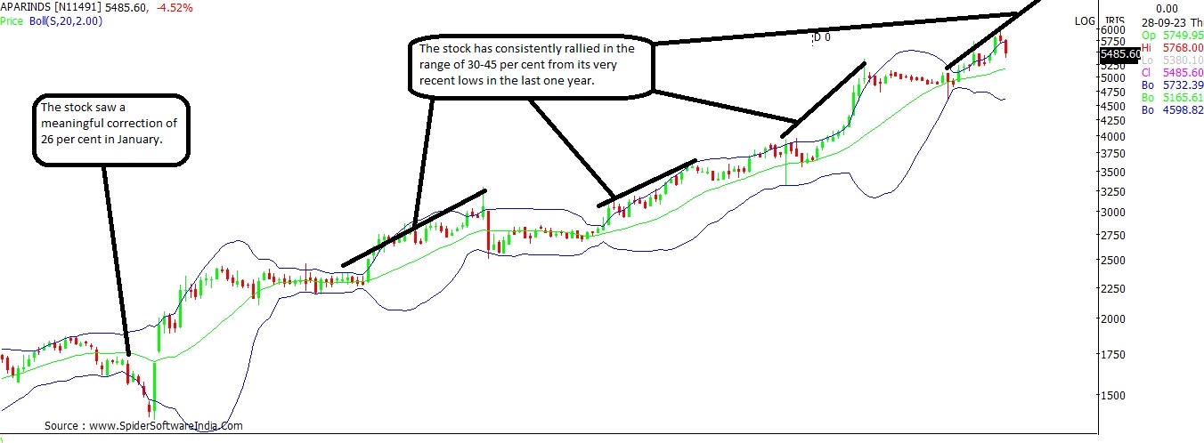 Apart from the 220 per cent gain in 2023 so far, shares of Apar Industries have witnessed a steady ascend since late May 2022 from levels of Rs 600-odd levels - thus generating a whopping 858 per cent or 9.5-fold jump in the last 16 months.