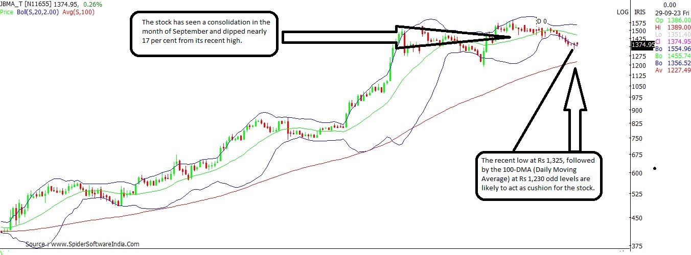 Shares of JBM Auto have surged nearly 166 per cent so far this year. Further, the stock has seen a prolonged period of consolidation in the month of September with the stock dipping nearly 17 per cent from its recent high of Rs 1,607.