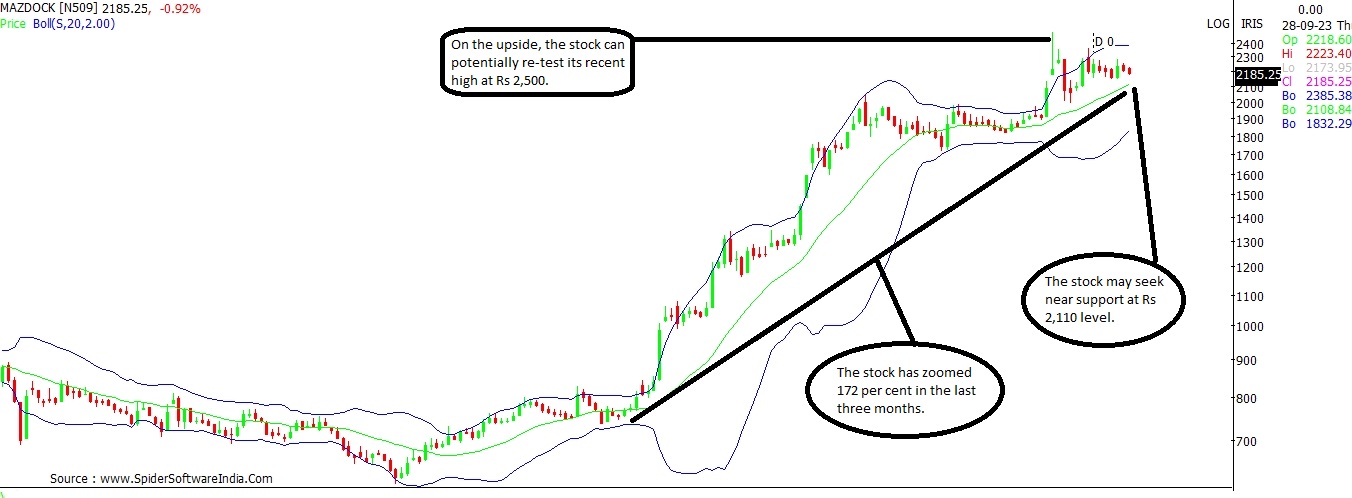 The monthly chart suggests that the bias for the stock is likely to remain positive as long as the stock sustains above Rs 1,945. Immediate support for the stock can be expected around its 20-DMA at Rs 2,110. On the upside, the stock can revisit its recent high near about the Rs 2,500-mark.