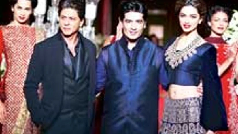 This Mumbai-based fashion guru decided to give traditional wedding colours of red and deep maroons a miss and dressed the bride in royal blue, burgundy and beige instead. Raw silk was textured and dyed along with velvet to create restrained volume in his crystal-studded lehengas with silver taar ka kaam. He retained the old world regalia in menswear as well with embroidered collars on structured sherwanis and gold-tipped Oxfords. "In the 1930s, affluence was celebrated. So I made a play with the backs - sexy, deep and sensuous. I am a fan of Kashmiri embroidery and chikankari, so these resurfaced on lehengas along with lace, net and cutwork," says Malhotra. The piece de resistance of the show was the presence of Shah Rukh Khan on the catwalk, along with his Chennai Express co-star Deepika Padukone. The latter wore a dazzling three-tiered diamond neckpiece especially designed in Bikaner. Also special were the Christian Louboutin shoes that were made exclusively for the show by the master himself.