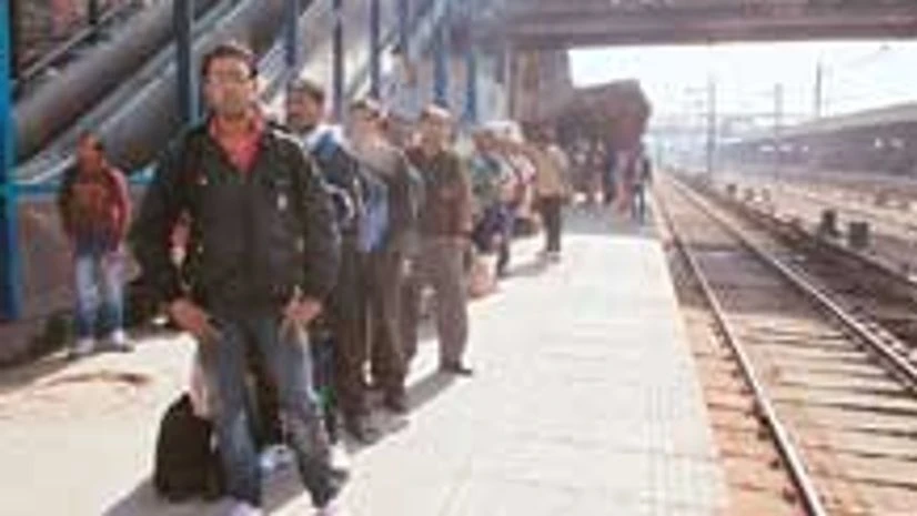 It is 11:30 am. On Platform 14, long queues have formed where the general compartments of the Bihar Sampark Kranti are expected to start three hours later.