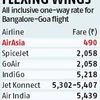 Rival airlines have already cut fares in the Bangalore-Goa sector to take on AirAsia India. On Thursday, budget carrier SpiceJet announced special promotional fares on the Chennai-Bangalore and Bangalore-Goa routes by offering tickets as low as Rs 1,499, excluding statutory taxes. This limited inventory offer is for travel dates from June 12 onwards, the airline had said. Currently, one-way tickets on SpiceJet and GoAir are available at an all-inclusive fare of Rs 2,058 on the Bangalore-Goa route.