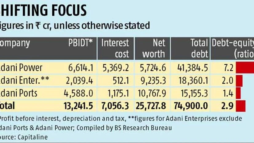 The bulk of Adani group's debt is accounted for by Adani Power, which reported a total debt of Rs 41,384 crore at the end of 2014-15. It was a fourth straight year in which the company reported a net loss. The brighter side, however, is that Adani group's port company, Adani Ports & SEZ, is cash-rich and one of its least leveraged companies. This, coupled with its high market-capitalisation-to-debt ratio, gives the Adani group the headroom to further scale up its capital expenditure.