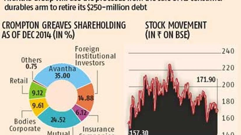 Avantha will use the proceeds of the sale to retire its $250-million debt, owed to private equity companies, KKR and Apollo. As the repayment date for the loan is nearer, the stake in the consumer durables firm is likely to be sold at a lower valuation, said a banking source.