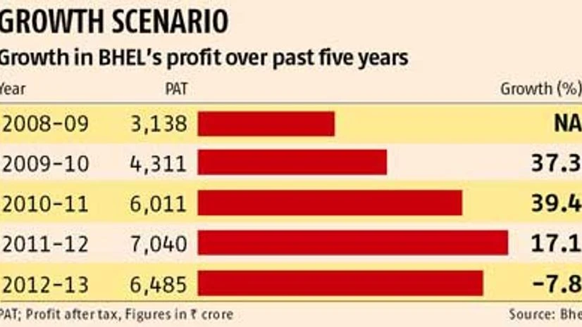 The largest power equipment manufacturer in the country posted a net profit of Rs 6,485 crore in 2012-13, compared with Rs 7,040 crore in the year before. Turnover increased by a marginal one per cent to Rs 50,015 crore from Rs 49,510 crore. "We had a turnover target of Rs 1 lakh crore. Now, we are taking a re-look at it," chairman and managing director B P Rao said at the company's annual press conference.