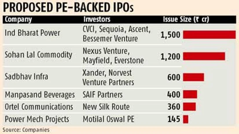 A number of IPOs are being launched by PE-backed firms such as Manpasand Beverages, NSR-backed Ortel Communication, Sadbhav Infra and Ind Bharat Power to tap the market, which has seen a comeback. "More companies with a good record, differentiated product/service strategy and good management teams should be able to have a successful listing in the near term," said Rastogi.