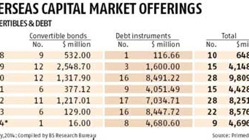 Data compiled by this newspaper show Indian companies have raised close to $4.6 billion since January against $8.5 billion in 2013 (see chart). Analysts said companies with export income were more aggressive in raising dollar loans as they had a natural hedge against currency swings.