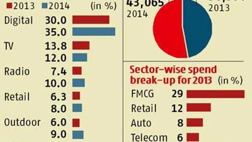 Print advertising, which stands at Rs 14,248 crore and is the second-largest contributor to advertising in India, will see 8.5 per cent growth, compared with 4.6 per cent last year, ending the year at Rs 15,459 crore. This growth, Srinivas said, would be led by regional advertising in newspapers, as companies in sectors such as telecom, fast-moving consumer goods, retail and automobiles increasingly targeted tier-II and III markets. “This trend has been visible for some time now,” Srinivas says, adding, “There will be acceleration this year.”