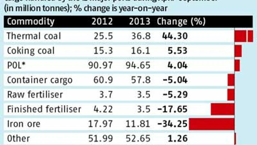 Between April and September this year, iron ore cargo fell 34 per cent, while that for fertilisers fell 18 per cent. Petroleum oil lubricant imports rose four per cent. Containerised cargo saw a decline of five per cent.