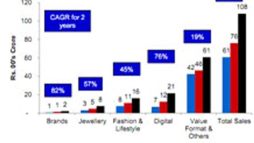 On a two-year CAGR basis value format stores have grown by 19%. Low shelf-life of products adds to the logistics cost thus impacting margins. The company seems to be consciously reducing its dependence on this division if one were to look at new store additions data. Reliance has added the maximum numbers of stores at 95 in FY13 in fashion and life style division, 46 new stores were added in the digital division while value format stores saw only 10 new stores. For Future Retail, the fashion and lifestyle segment was the category contributing most to its profitability.