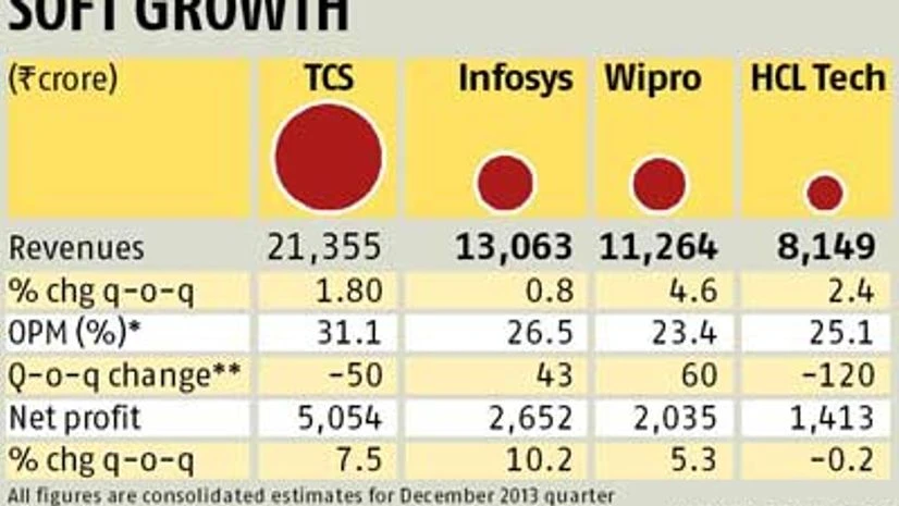 Modest rupee appreciation (up 1.4 per cent sequentially) could limit growth in other income and margins for most companies. Lower working days will also put pressure on utilisation rates. The Street will actively watch for management commentary on calendar year 2014 (CY14) budgets and key growth drivers.