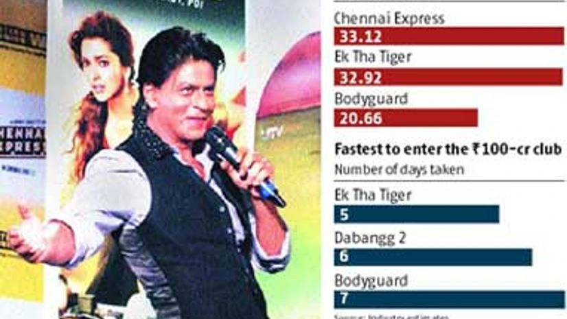 According to sources in production houses, Chennai Express has received 95-100 per cent occupancy in theatres for the weekend and is expected to touch the Rs 100-crore mark by Monday evening — to break the record held by Ek Tha Tiger, which had last year stormed into the elite club within five days of release.