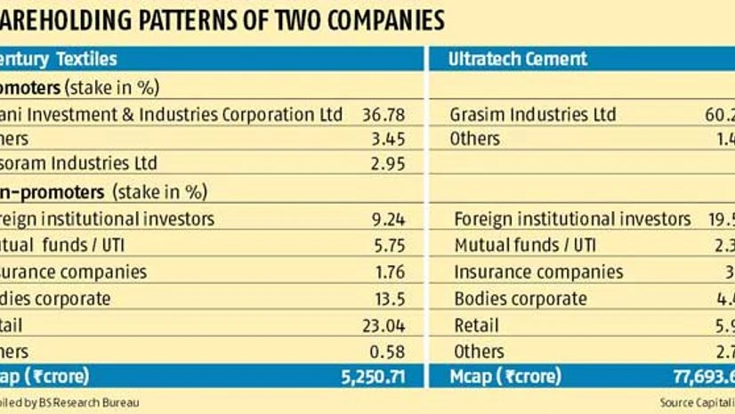 On Monday, Century Textiles’ shares closed at Rs 568 apiece, up 2.88 per cent from the previous close. UltraTech, on the other hand, closed marginally up at Rs 2,831 a share.