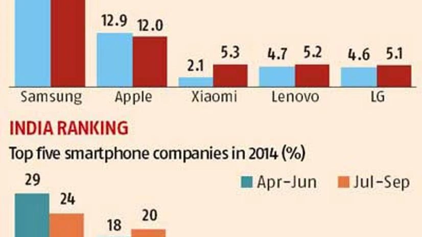 Xiaomi of China emerged as the third largest maker of smartphones after Samsung and Apple in the quarter ended September 30, according to International Data Corporation. It reported 211 per cent growth in sales for the quarter in 2014, even as Samsung reported a drop of 8.2 per cent and Apple an increase of only 16 per cent. The final battle for supremacy will be fought in India, the world's second-largest market after China, which Xiaomi entered in July through a tie-up with online retailer Flipkart. By the end of October, it had sold over half a million smartphones in flash sales that got over in a few seconds. That might still be small - smartphone and feature phone sales were 72 million in the July-September 2014 quarter, according to IDC - but none of Xiaomi's rivals is taking it lightly.