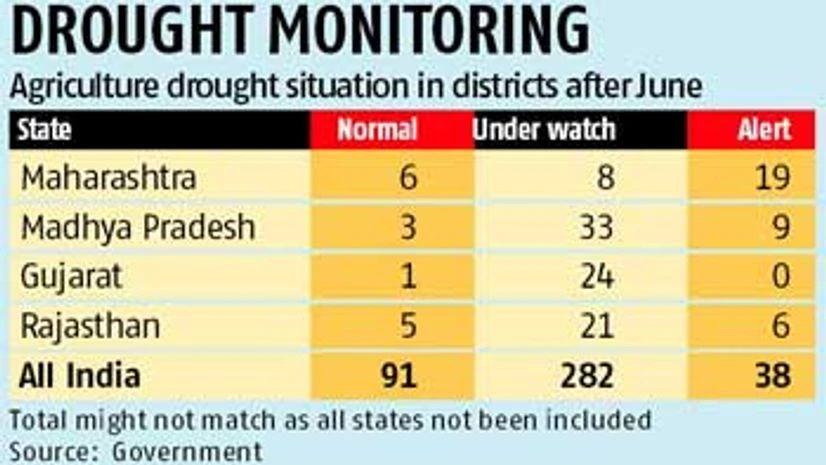 The assessment is based on rainfall in June and the first few days of July. Of the 38 districts, half are in Maharashtra, nine in Madhya Pradesh and two in Uttar Pradesh.