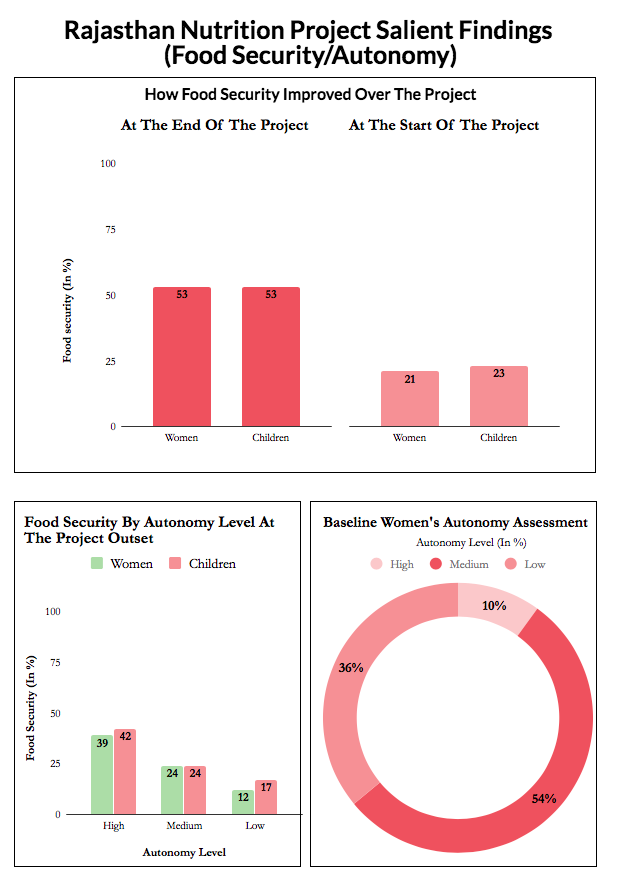 One of the project aims was to increase the food available for the sample set of women and children. This was measured by moving them up at least one point on a four-point scale.