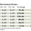 According to the latest data from the department of agriculture, the biggest gains have been made in Gujarat and Maharashtra. In these two states, 270 per cent and 88 per cent more area was sown, respectively, till July 4 over the same period last year at 2.8 million hectares and two million hectares. In 2012-13, India's cotton production slumped by almost four per cent to 33.8 million bales mainly because of drought in Maharashtra and Gujarat.