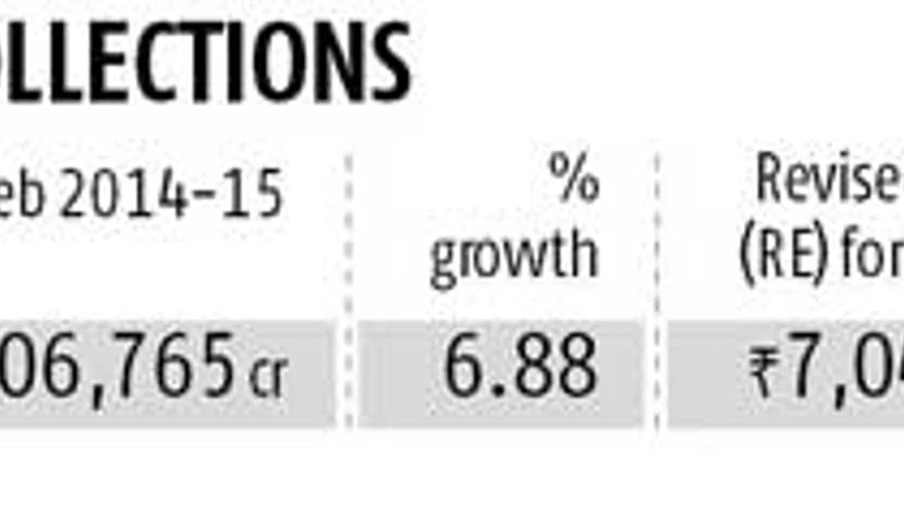 Securities transaction tax stood at Rs 6,280 crore, up 45.44 per cent. Advance tax collections grew 13.41 per cent during the April-February of 2014-15 period against a rise of 8.67 per cent in the year-ago period.