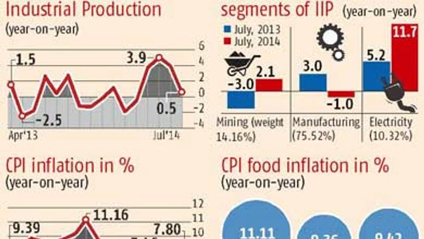 If excise duty collections are any indication, the outlook for the IIP for August isn't bleak. In August, excise duty collections rose eight per cent, against 7.5 per cent in July. During the same period, overall indirect tax collections rose from 4.9 per cent to nine per cent. But this growth, as well as that in the April-August period (4.6 per cent) pales in comparison to the 20 per cent pegged in Budget 2014-15. July IIP data didn't have a one-to-one relation with excise duty collections.