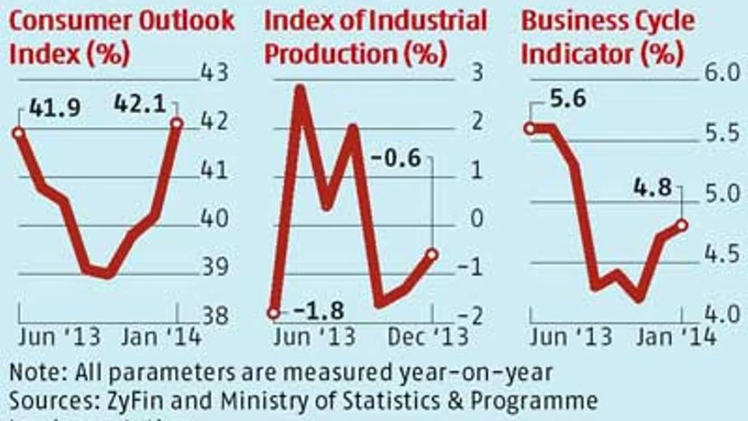 But, then why did BCI rise in December and January? Chaudhuri attributed this to increased consumer spending because of moderation in inflation. ZyFin's consumer outlook index has been rising since November (see chart). The index gives indication for the next three-six months.